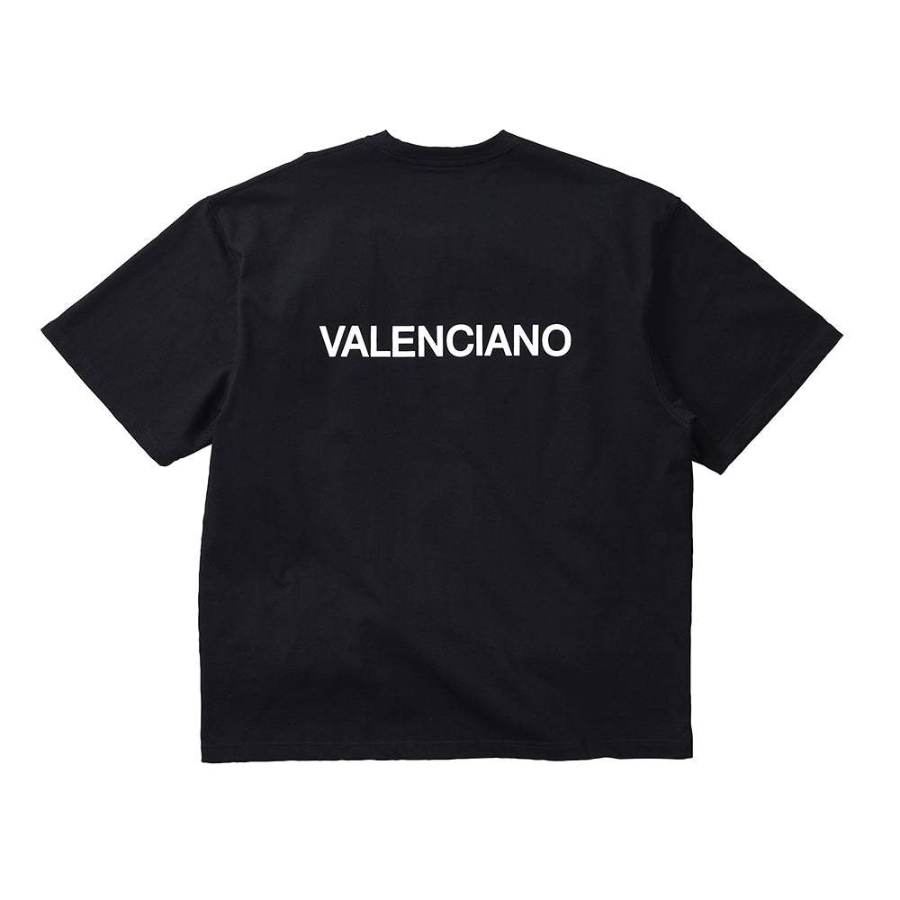 胸元のポケットに織ネームをあしらい、背面にはラバープリントを配したVALENCIANOらしい一枚。